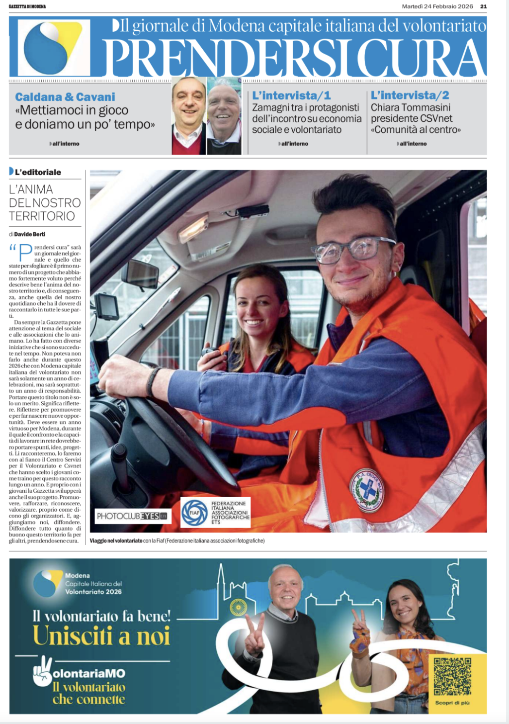 Da oggi, sulla Gazzetta di Modena con la rubrica “Prendersi cura”, il giornale di Modena Capitale Italiana del Volontariato!