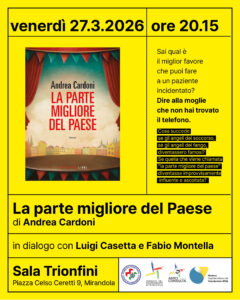 Mirandola – PRESENTAZIONE del libro “LA PARTE MIGLIORE DEL PAESE” di Andrea Cardoni