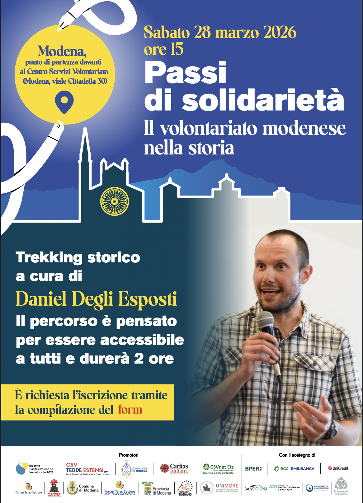 Modena – Trekking storico “Passi di solidarietà. Il volontariato modenese nella storia” a cura di Daniel Degli Esposti
