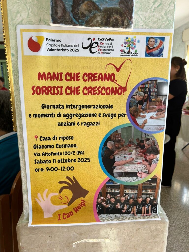 Si è conclusa con grande partecipazione ed entusiasmo la giornata intergenerazionale organizzata sabato 11 ottobre 2025 presso la Casa di Riposo “Giacomo Cusmano” di Palermo, nell’ambito delle iniziative di “Palermo Capitale Italiana del Volontariato 2025”.